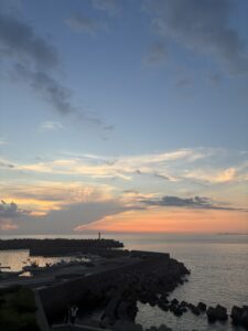 夕日が水平線に落ちる様子は見れませんでしたが、
