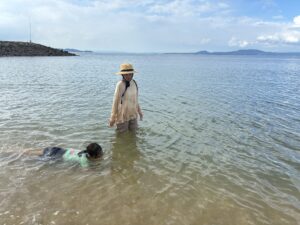 この日は、海辺を歩くではなく・・・泳いでますね。