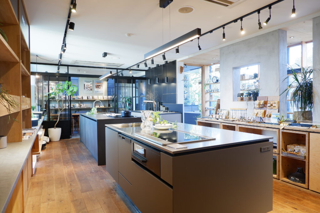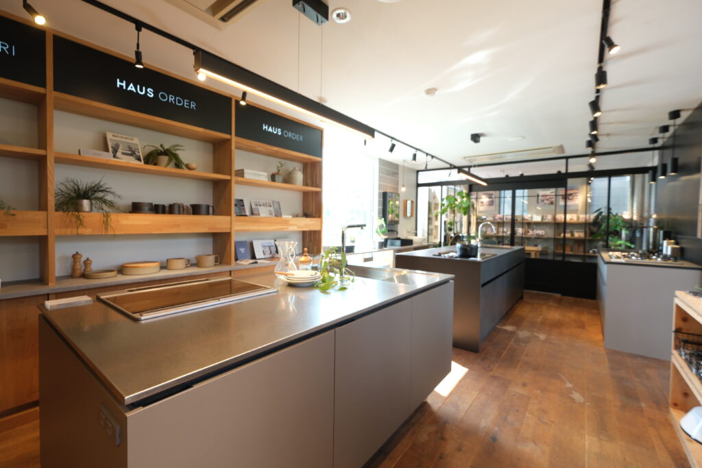 01.建築ギャラリー内にて、3つの素敵なキッチンの展示