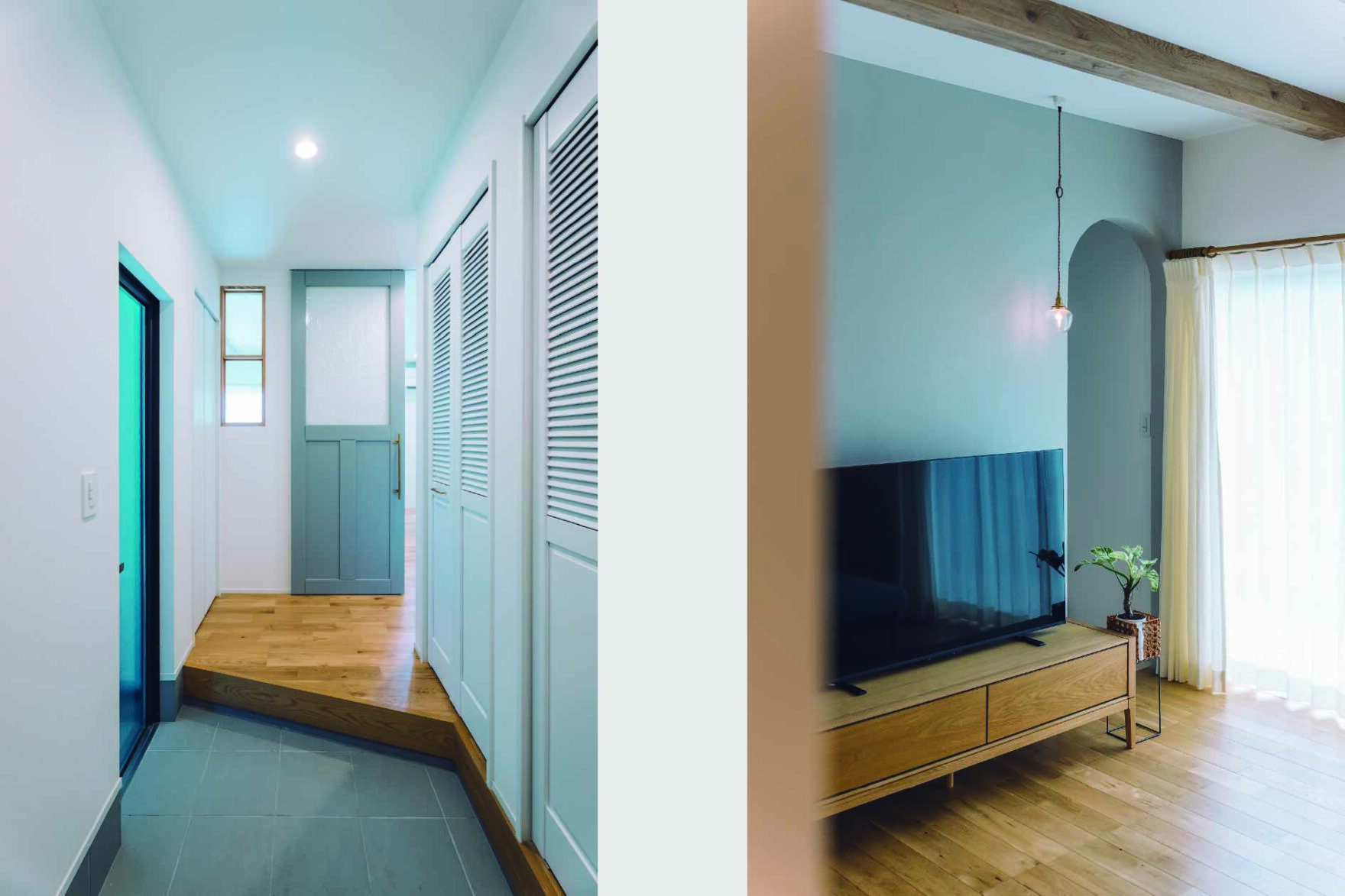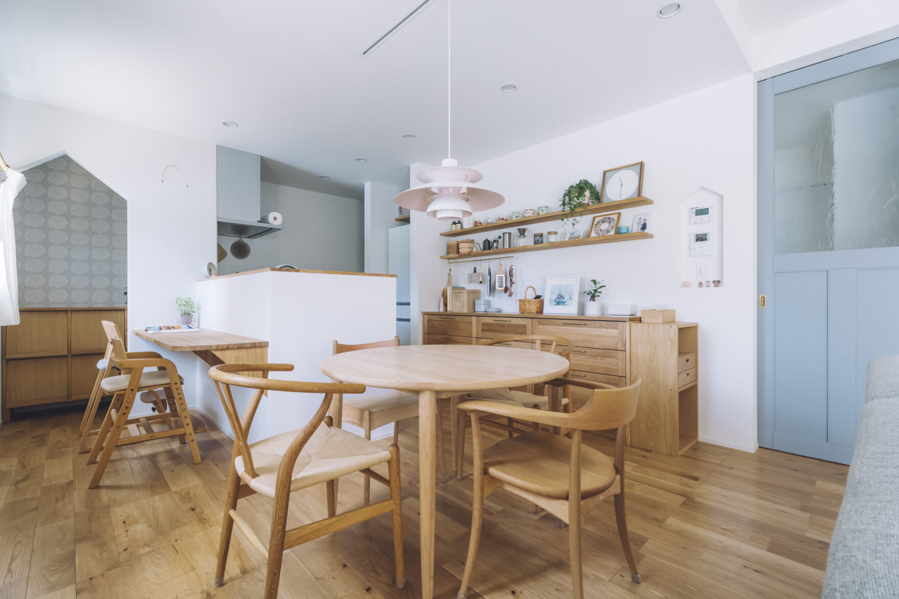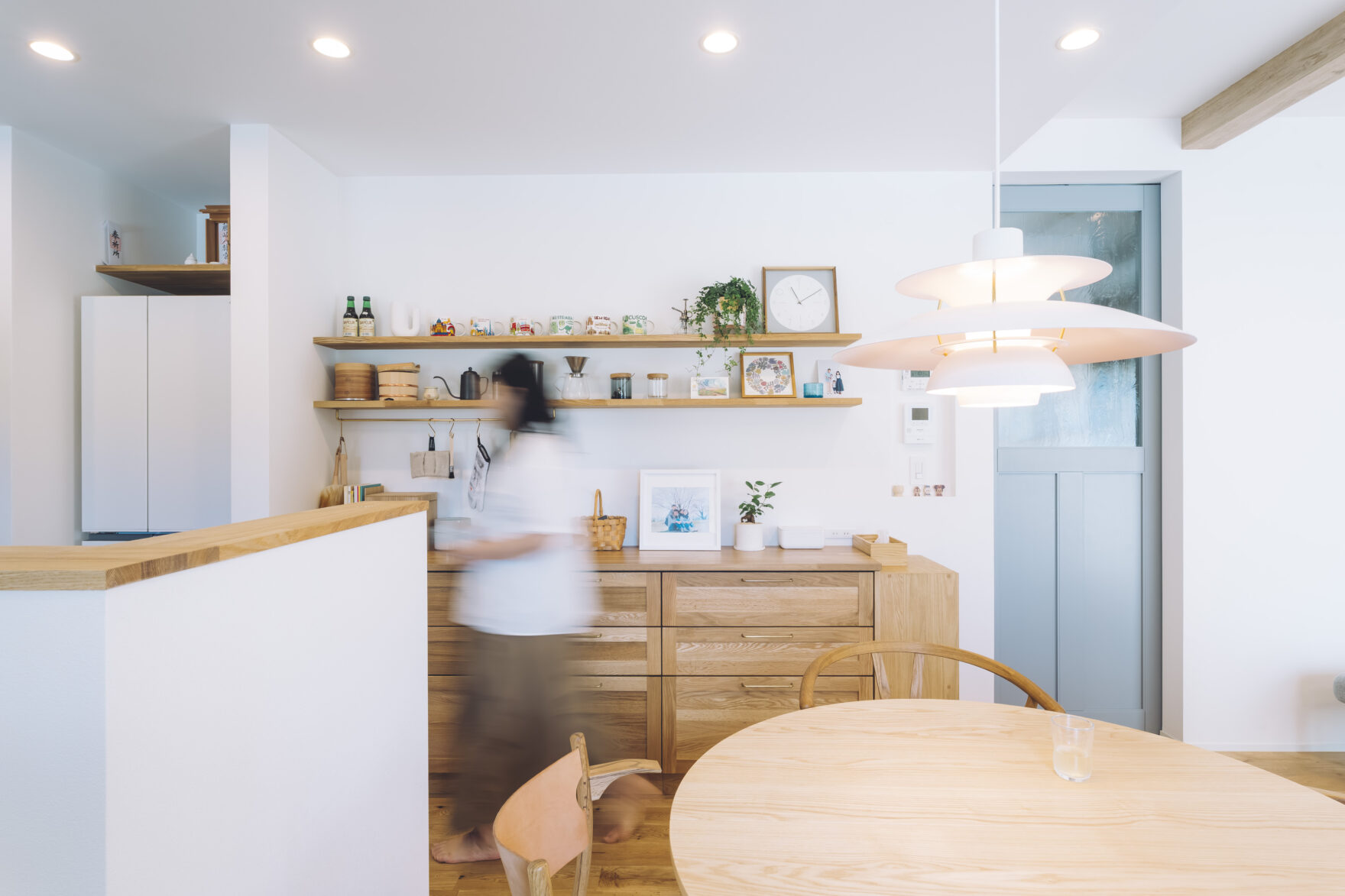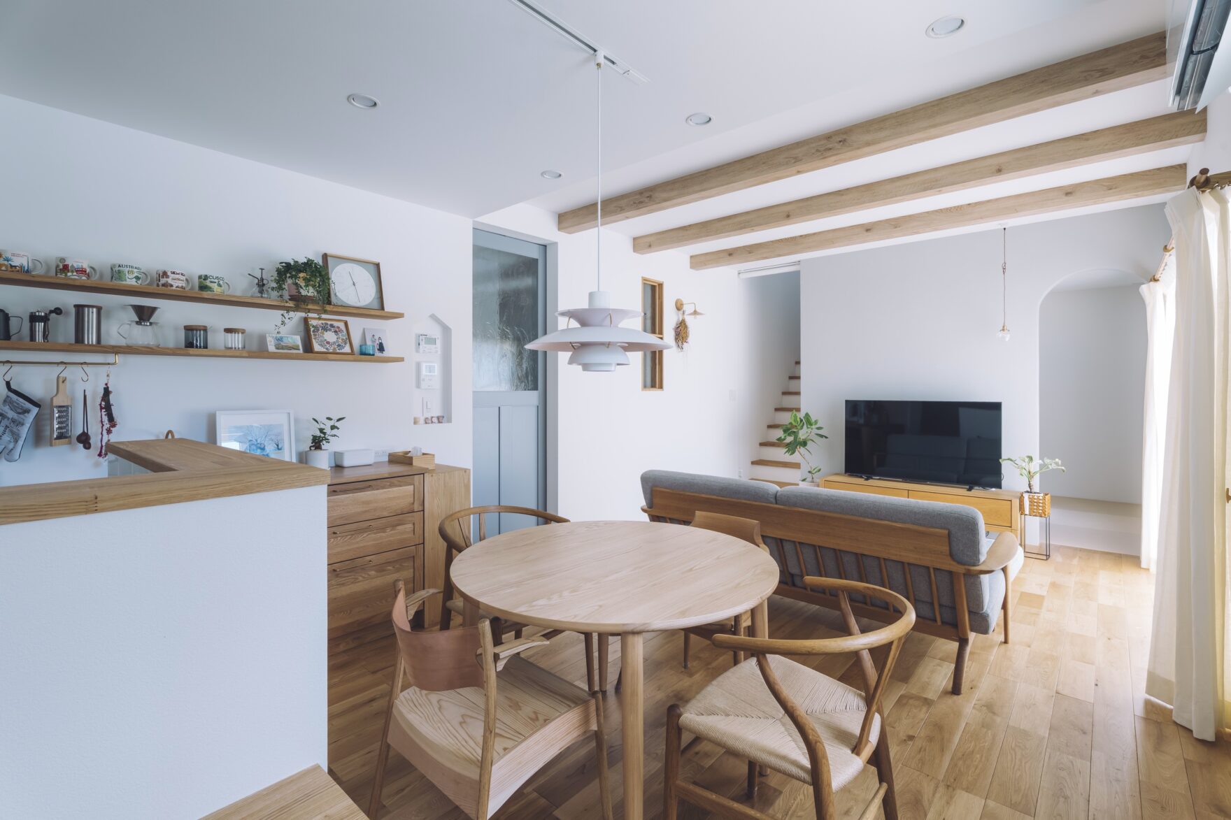 家族の趣味のキャンプを最大限に楽しむ為のガレージのある住まい。 ガルバリウムの素材が生きるシンボリックな外観。 インテリアはこだわって丁寧にセレクトされた 家具や道具が彩る、心地よく、毎日が楽しくなる暮らし。